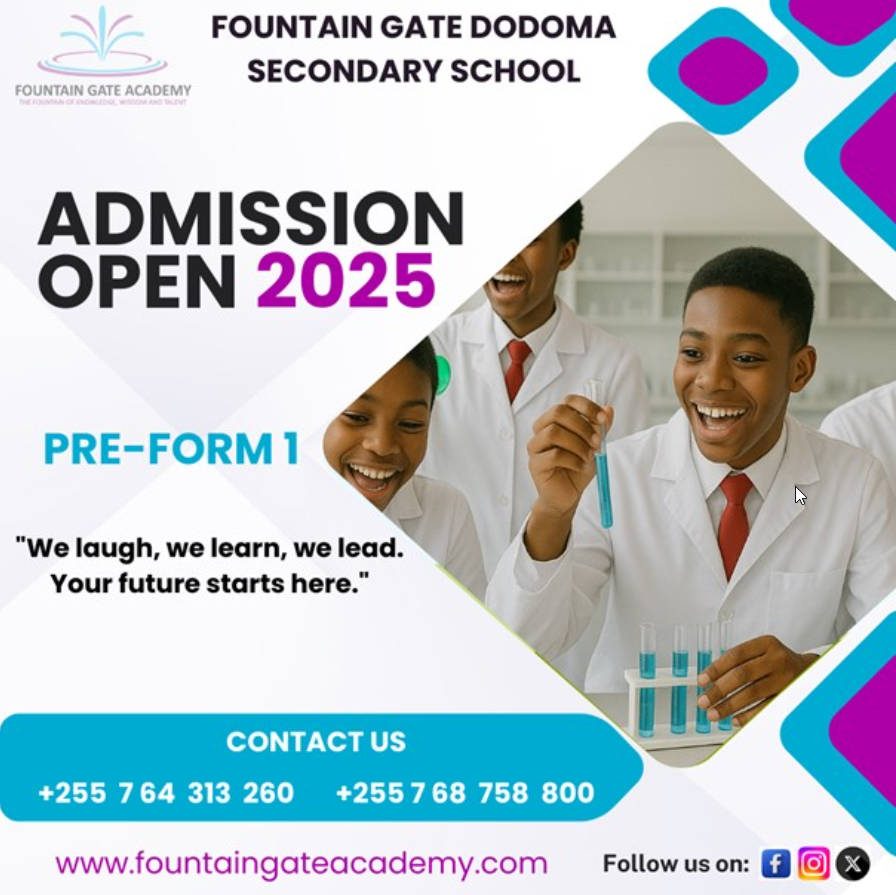 Fountain Gate Dodoma Secondary School is more than an educational facility; it's a vibrant community where joy and learning intertwine, and every student is guided to grow into a self-assured leader. As we welcome applications for Form One 2026, we invite you to step into a future filled with possibilities. Here, curiosity leads to achievement, and knowledge evolves into excellence. Together, let’s build a brighter tomorrow!